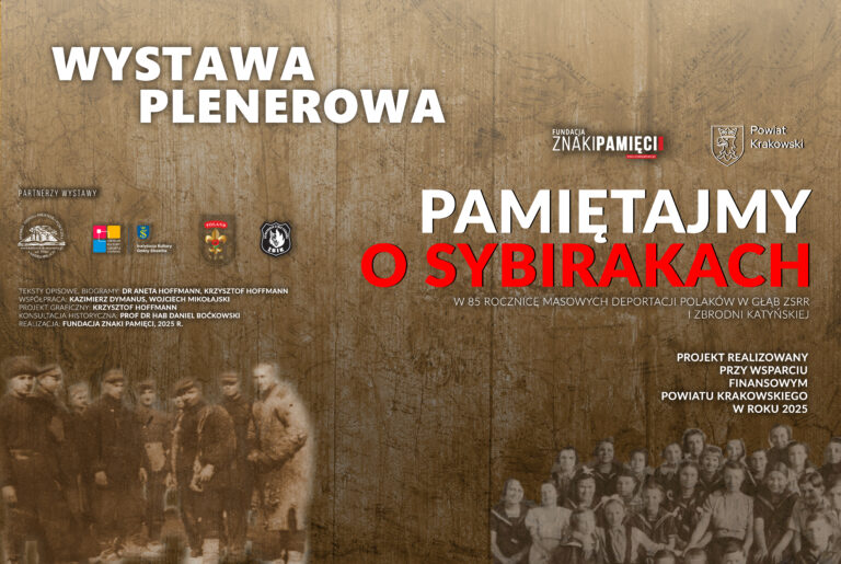 Wystawa „Pamiętajmy o Sybirakach” autorstwa historyków Fundacji Znaki Pamięci, powstała w 2025 r. przy wsparciu finansowym Powiatu Krakowskiego pragnie poprzez 20 plansz tematycznych i biograficznych upowszechnić losy mieszkańców Powiatu Krakowskiego, ze szczególnym uwzględnieniem indywidualnych losów mieszkańców Krzeszowic i Skawiny, represjonowanych w czasie i po II wojnie światowej przez Sowietów. Szczególnie chciano poruszyć ten temat z uwagi na przypadającą w tym roku 85 rocznicę masowych deportacji obywateli polskich do ZSRR oraz Zbrodni Katyńskiej. Wystawa w rzetelny oraz ciekawy graficznie sposób przybliża ważny temat represji sowieckich na obywatelach polskich. Szczególnie skupia się na przypomnieniu indywidualnych losów mieszkańców powiatu krakowskiego, którzy doświadczyli niewoli sowieckiej jako jeńcy wojenni, zesłańcy czy więźniowie łagrów, sowieckich obozów koncentracyjnych. W porozumieniu z Archiwum Związku Sybiraków w Warszawie i rodzinami Sybiraków poprzez wystawę zostaną przywołane fakty historyczne opowiedziane losami ludzi. Ludzi, którzy także w czasie PRL nie mogli głośno mówić o swych przeżyciach. Ich heroizm zasługuje na naszą pamięć, podczas gdy w ogromnej większości Ich samych nie ma już wśród nas. Organizatorzy wystawy liczą na zaktywizowanie wokół niej wielu mieszkańców Skawiny i Krzeszowic, którzy byli członkami rodzin Sybiraków lub ich znajomymi z pracy, szkoły czy sąsiedztwa. Młodemu pokoleniu wystawa ta naświetli mniej znany i mniej przekazywany w szkołach temat represji sowieckich trwających w latach 1939-1959.