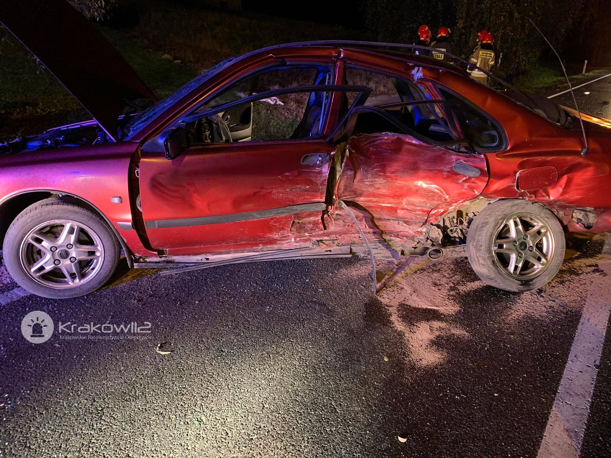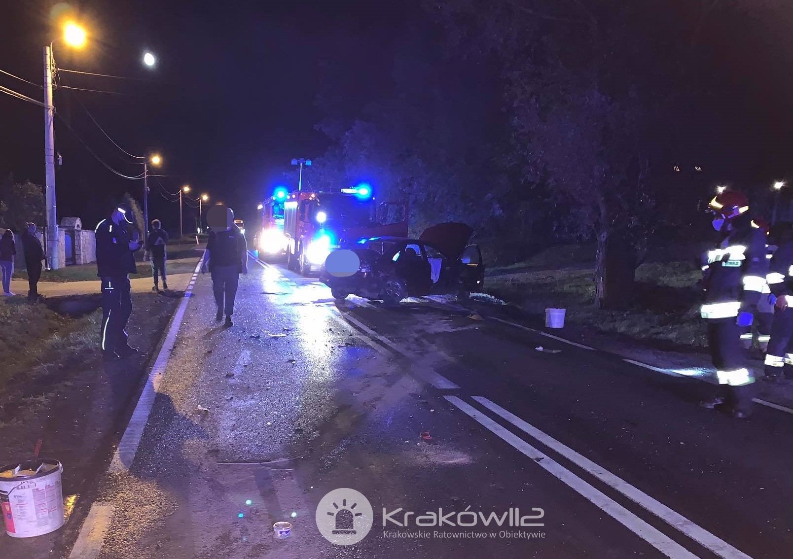 Pojazdami podróżowały łącznie 4 osoby. Jedna osoba poszkodowana zaopatrzona została na miejscu, druga przetransportowana ambulansem ZRM Skawina do szpitala.